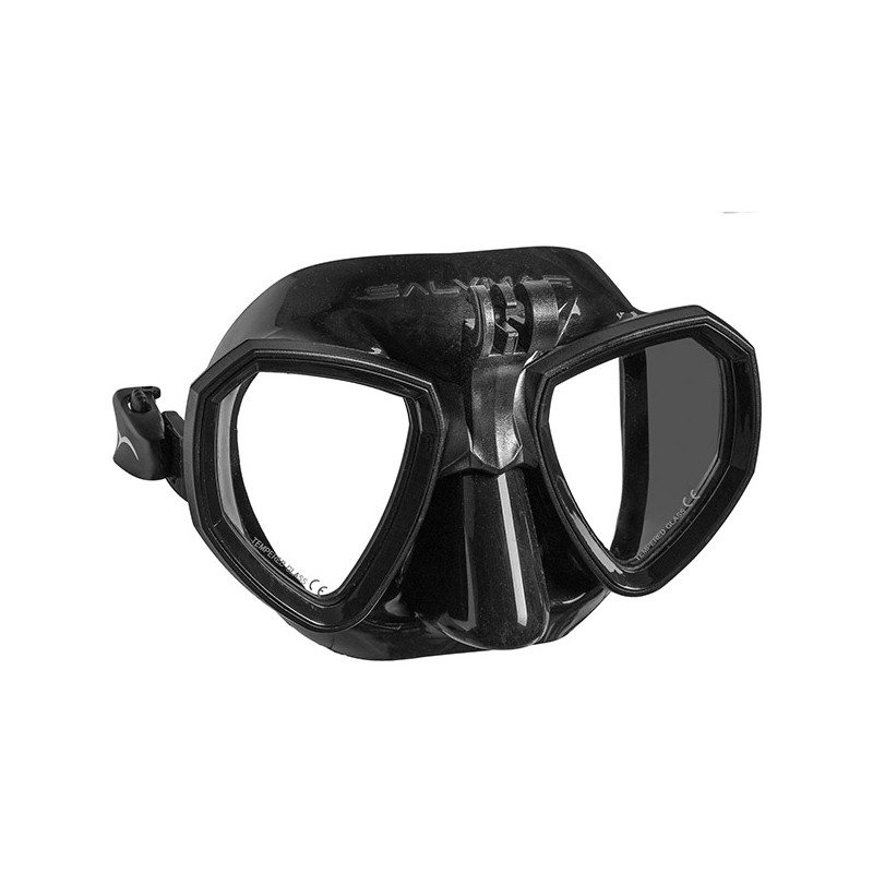 • Тип – маска для фрідайвінгу / підводного полювання • Об’єм – низький • Лінзи – загартоване скло, дві окремі • Матеріал обтюратора – гіпоалергенний силікон • Кріплення під action-камеру